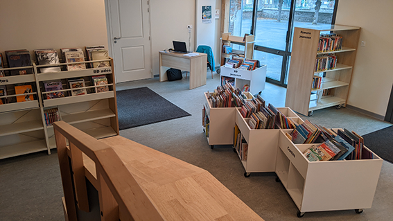 Le local fait 60 m² et huit bénévoles se relayent. Chaque semaine, les bénévoles font vivre ce lieu, en partenariat avec la Médiathèque départementale qui a fourni le fonds de départ : près de 1 800 livres adultes et jeunesse.